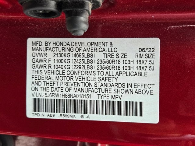Radiant Red Metallic 2022 Honda CR-V EX-L EX-L 1.5L I4 DOHC 16V CVT 28/34 City/Highway MPG