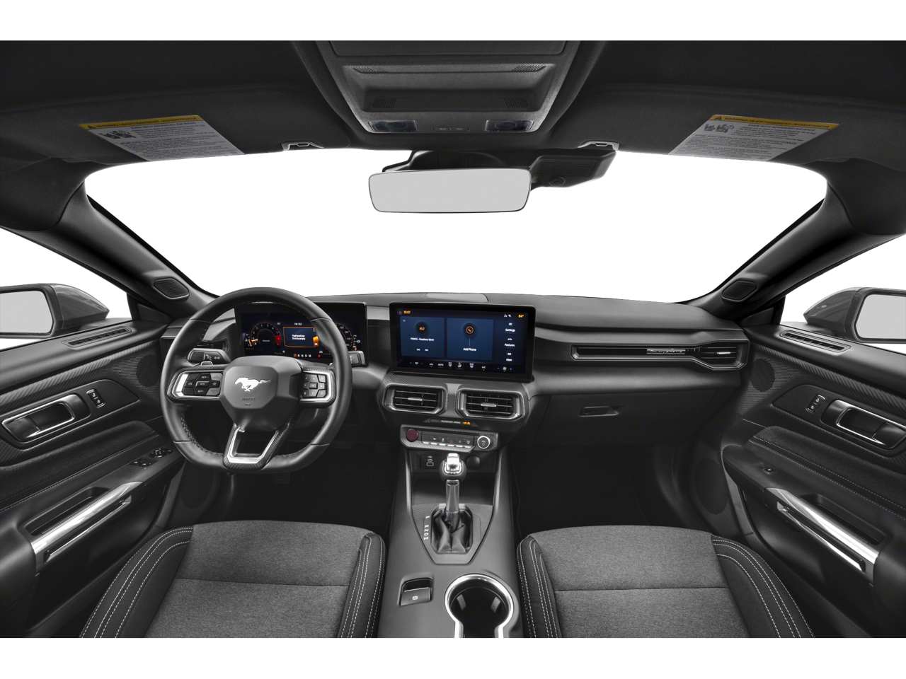 Mustang GT, 2D Coupe, 5.0L V8 Ti-VCT, 6-Speed Manual, RWD, Oxford White, Black Onyx Cloth.